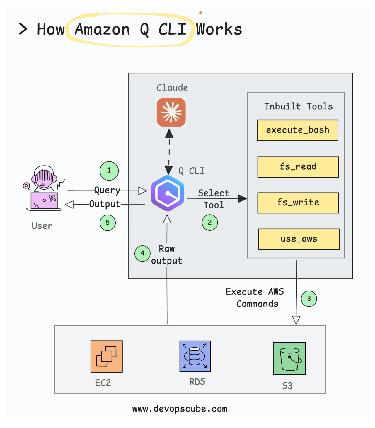 Amazon Q CLI is an AI-powered command line interface that helps developers and Devops engineers perform tasks on AWS backed by Claude LLM.